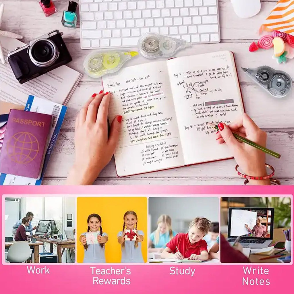• HIGH QUALITY: Our correction tapes are a neat alternative to traditional liquid correction fluid or correction pens, non-toxic and odorless, Applies Dry, no demage to your health, safety to use. Tapes is mess-free and tear resistant --great for correcting single or multiple lines.